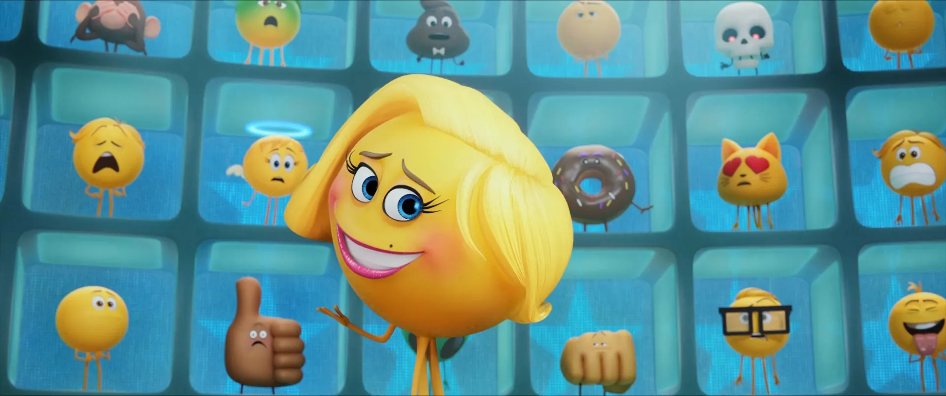 Actors: T.J. Miller as Gene (voice), James Corden as Hi-5 (voice), Anna Faris as Jailbreak (voice), Maya Rudolph as Smiler (voice), Steven Wright as Mel Meh (voice), Jennifer Coolidge as Mary Meh (voice), Jake T. Austin as Alex (voice), Christina Aguilera as Akiko Glitter (voice), Sofía Vergara as Flamenco Dancer (voice), Patrick Stewart as Poop (voice), Rob Riggle as Ice Cream (voice), Sean Hayes as Steven (voice), Tati Gabrielle as Addie (voice), Jude Koyaute as Poop Jr. (voice), Rachael Ray as Spam (voice), Jeff Ross as Internet Troll (voice), Melissa Sturm as Angel / Phone Store Employee (voice), Tony Leondis as Laughter / Broom / Pizza (voice), Sean Giambrone as Travis (voice), Timothy Durkin as Mr. Schnoebelen (voice), Liam Aiken as Ronnie Ram Tech (voice), Wendell Brooks as Ram Tech Bouncer (voice), Tarek Bishara as Fist Bump (voice), Kevin Chamberlin as Gavel (voice), William Townsend as Rocket (voice), Adam Brown as Flashlight / Trojan Horse (voice), William J. Caparella as Alien (voice), Joe Whyte as Red Wagon (voice), Conrad Vernon as Trojan Horse (voice), Kate Gorney as Heart Eyes (voice), Rich Dietl as Nerd Emoji (voice), Derek Mio as Elephant (voice), Paige Eileen Caparella as Cat Heart Eyes (voice), Bob Bergen as Additional Voices (voice), Debi Derryberry as Additional Voices (voice), Jess Harnell as Additional Voices (voice), Phil LaMarr as Additional Voices (voice), Laraine Newman as Additional Voices (voice), Tara Strong as Additional Voices (voice), Fred Tatasciore as Fried Shrimp Emoji / Additional Voices (voice), Elizabeth Daily as Additional Voices (voice), Carlos Alazraqui as Additional Voices (voice), Keith Anthony as Additional Voices (voice), Eric Bauza as Additional Voices (voice), David Boat as Additional Voices (voice), Terri Douglas as Additional Voices (voice), Keith Ferguson as Additional Voices (voice), Amy Hill as Additional Voices (voice), John Kassir as Additional Voices (voice), Josh Keaton as Additional Voices (voice), Mona Marshall as Additional Voices (voice), Scott Menville as Additional Voices (voice), Max Mittelman as Additional Voices (voice), Alicyn Packard as Additional Voices (voice), Paul Pape as Additional Voices (voice), Debra Wilson as Additional Voices (voice), Matthew Wood as Additional Voices (voice), John Cramer as Additional voices (voice), Jeff Fischer as Additional voices (voice), Bill Farmer as Additional voices (voice)